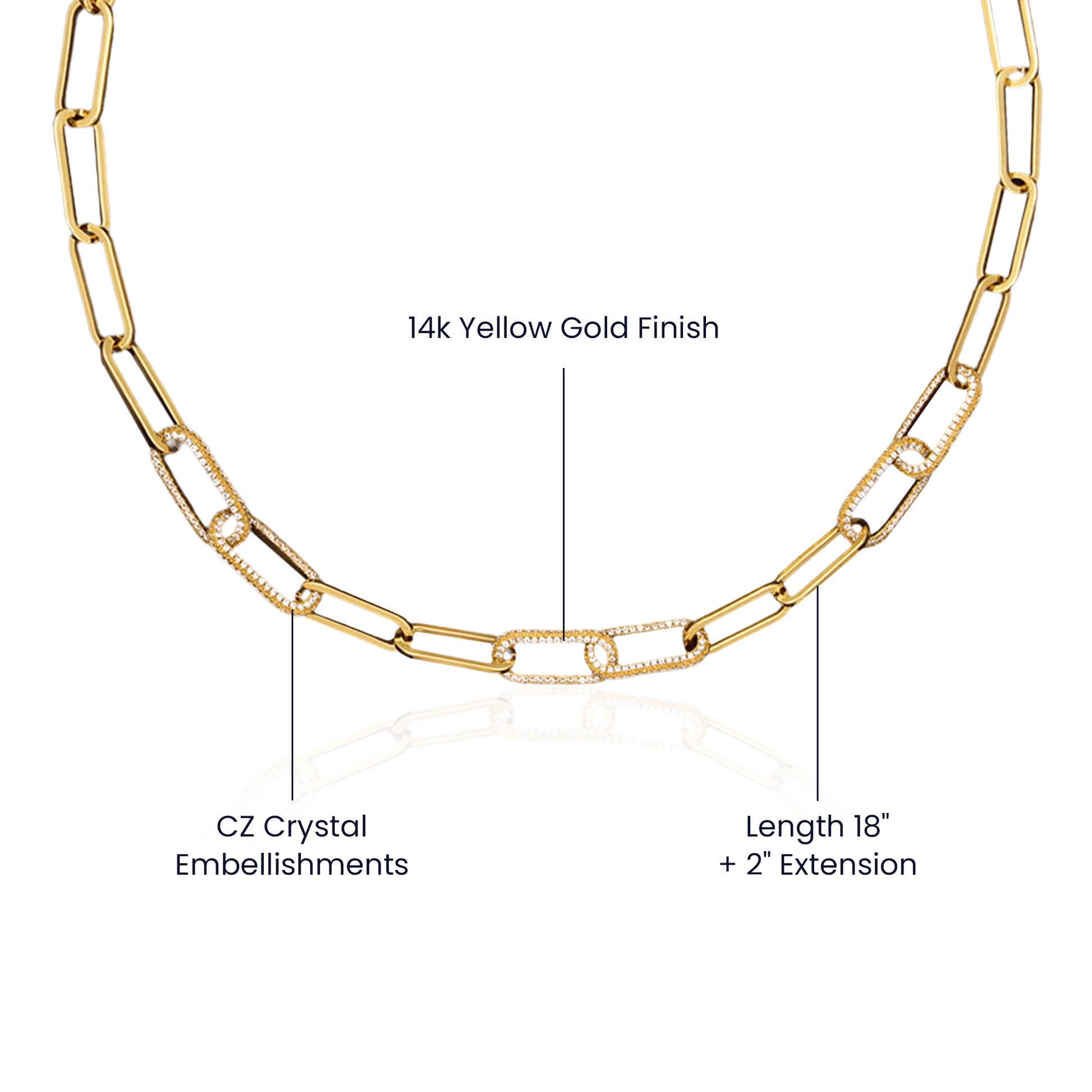 Looking to impress your special someone with a gift as stunning as they are? Delight them with the CZ Paperclip Chain, a luxurious and modern accessory perfect for birthdays, anniversaries, or simply to show you're thinking of them. Adorned with 700 pave-set Cubic Zirconia crystals, this exquisite piece is designed to captivate your loved one. It comes elegantly packaged in our Luxury Box, complete with an LED spotlight for an added wow factor and effortless gifting experience.