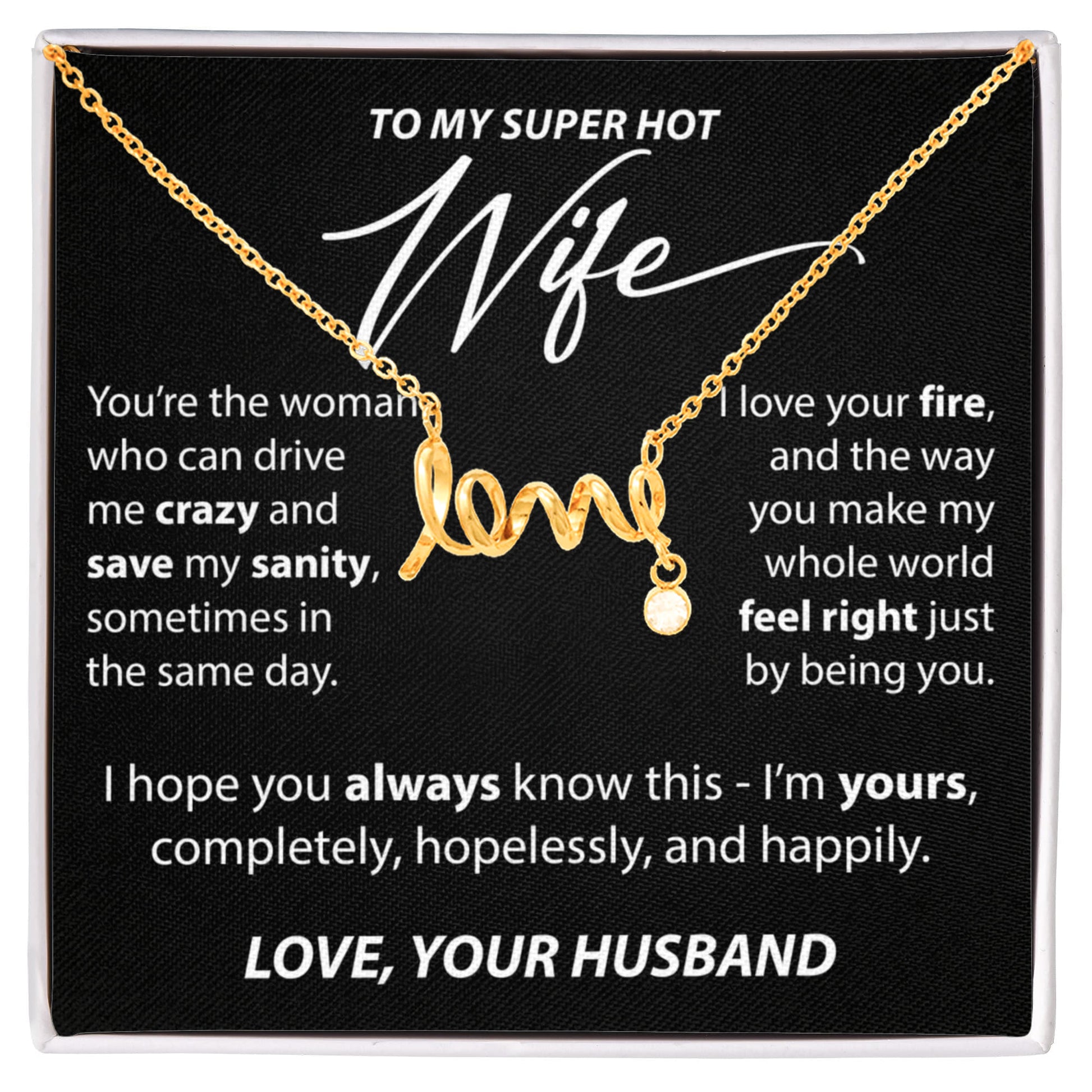 Gift for Wife from Husband - "To My Super Hot Wife" Necklace